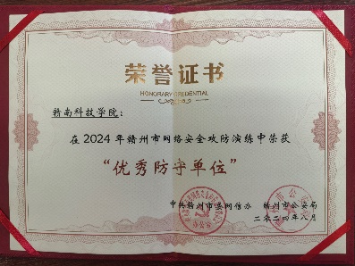 学院现代教育中心近年来荣获“2023年度教育部数字教育标准优秀应用案例”、“2024年赣州市网络安全攻防演练优秀防守单位”等荣誉。
